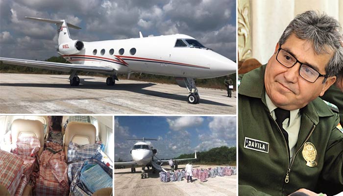 Dávila también se lo relacionó con el caso Narcojet, en 2020. Según reportes de Inteligencia de la Policía, un jet partió de Argentina, se abasteció de combustible y cargó paquetes de droga en Guayaramerín (Beni) y fue interceptado en México con casi una tonelada de cocaína. El exjefe antidroga presuntamente estuvo en Guayaramerín días antes y después del arribo de los pilotos que iban en el jet.