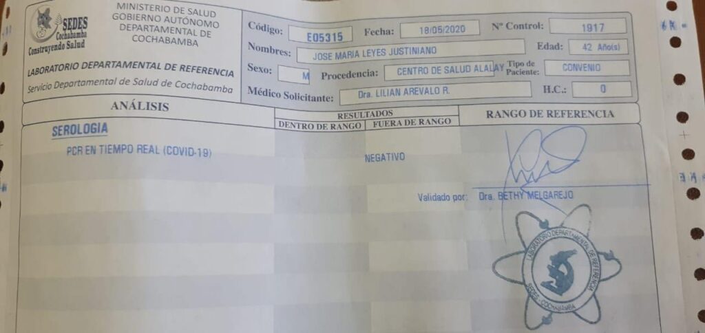 Lamentó que la Fiscalía haya «secuestrado los documentos» del centro de salud Alalay, dónde se sacó la prueba de Covid-19 a Leyes, ya que esto iría en contra del derecho a la confidencialidad.
