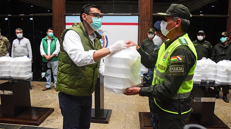 Desde el 22 de abril y por 15 días, la Alcaldía de Cochabamba dotó de alimentación a los policías y militares que patrullaban la ciudad.