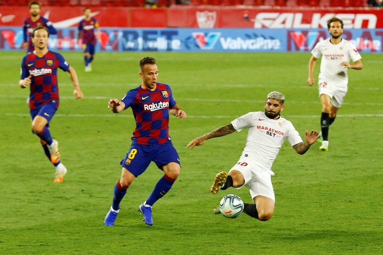 Barcelona viajaba a Sevilla con la misión de conseguir su tercera victoria consecutiva desde la reanudación de la Liga luego de la interrupción por la pandemia de coronavirus. Sin embargo, los primeros minutos no mostraron al equipo de Quique Setién en una posición dominante. Por el contrario, el conjunto local fue algo más claro y generó la primera ocasión de gol con un tiro libre que la defensa Blaugrana rechazó corto y que Jules Kounde capturó para sacar un peligroso remate cruzado. El intento del defensor se fue muy cerca del arco defendido por Marc-André ter Stegen.