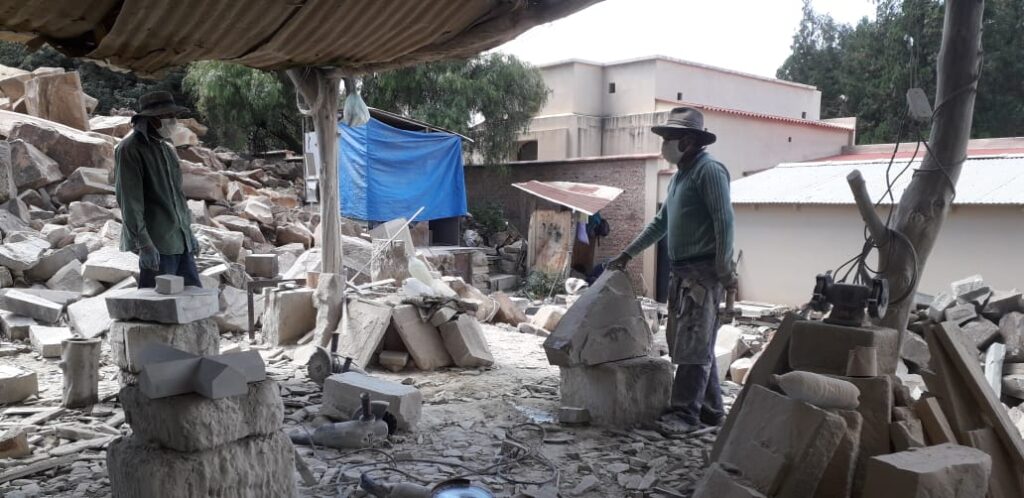 Ubicados a cuadra y media del Cementerio General de Cochabamba, en un terreno al aire libre diariamente cinco talladores en piedra dan forma a las rocas, que son trasformadas en lápidas, monumentos, morteros, batanes, masetas, cruces y en general lo que el cliente pida será moldeado por estos artesanos.