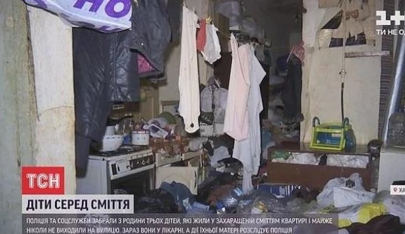 Masha, de cuatro años, y su hermano de dos, descuidados, fueron encontrados rodeados de montones de basura y se los llevaron los agentes de policía después de que allanaron el sucio piso en la ciudad de Kharkiv, al noreste de Ucrania.