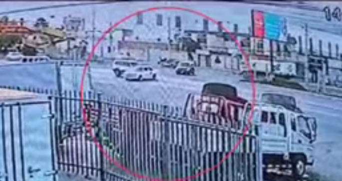 El terrible accidente quedó registrado por cámaras de seguridad de la zona y en las imágenes se ve como el motorizado choca contra el taxi y acto seguido sus ocupantes salen despedidos contra la capa asfáltica.