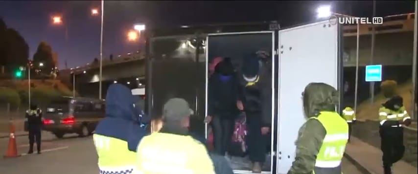 Más de 20 personas fueron sorprendidas viajando de El Alto a La Paz, en un camión frigorífico.