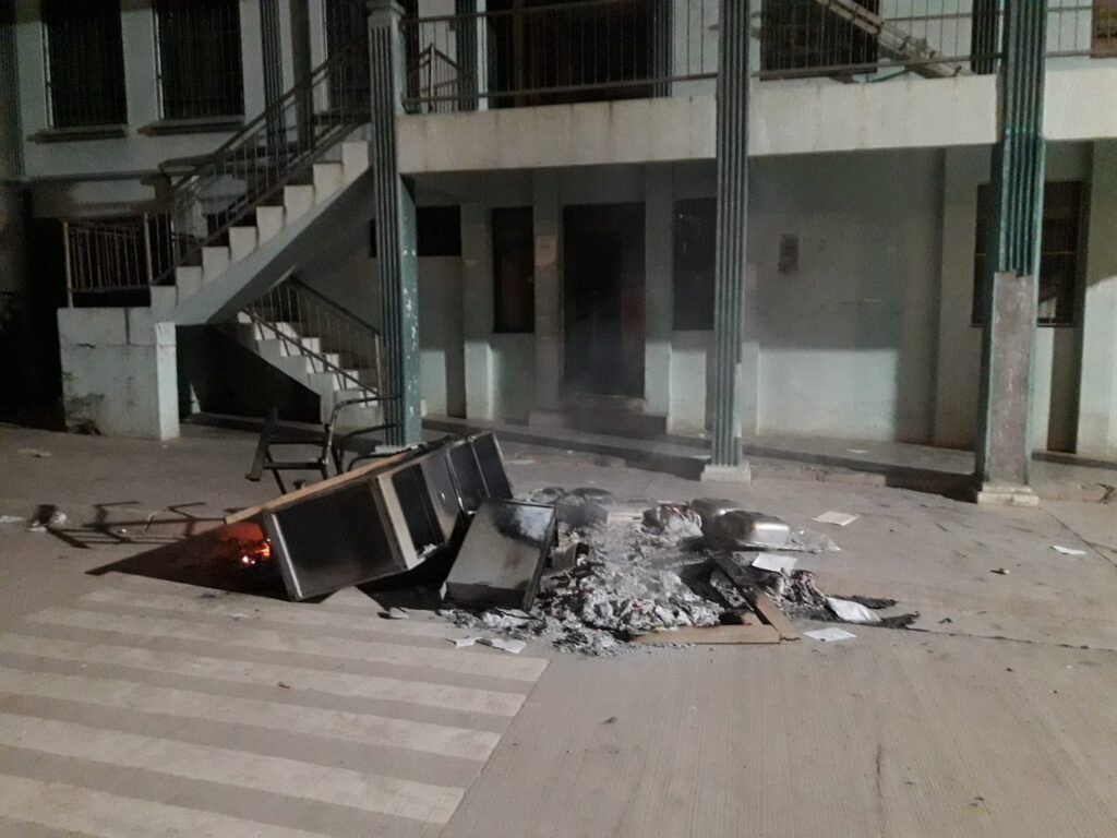 Según el informe policial el sospechoso fue agredido, al igual que los efectivos policiales, quienes se replegaron ante la arremetida contra ellos y sus oficinas. En medio de la intervención se arrestó a dos personas.