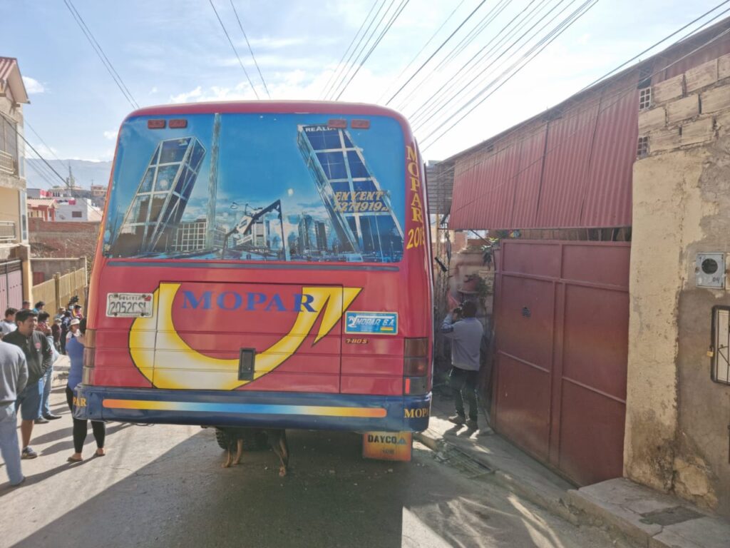 Un micro de transporte público se vio involucrado en un aparatoso hecho de tránsito, luego de impactar contra el muro de una casa, ubicada en el pasaje de la calle 6 y Av. Suecia, en el sur de la ciudad.