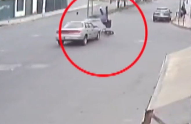 En las imágenes se ve como la motocicleta cruzaba la avenida cuando es embestida de pronto por un vehículo tipo vagoneta que circulaba con exceso de velocidad, por el fuerte impactó la motocicleta es lanzada a varios metros del lugar del choque, mientras que el conductor de la motocicleta sale despedido por los aires hasta impactar contra la capa asfáltica.