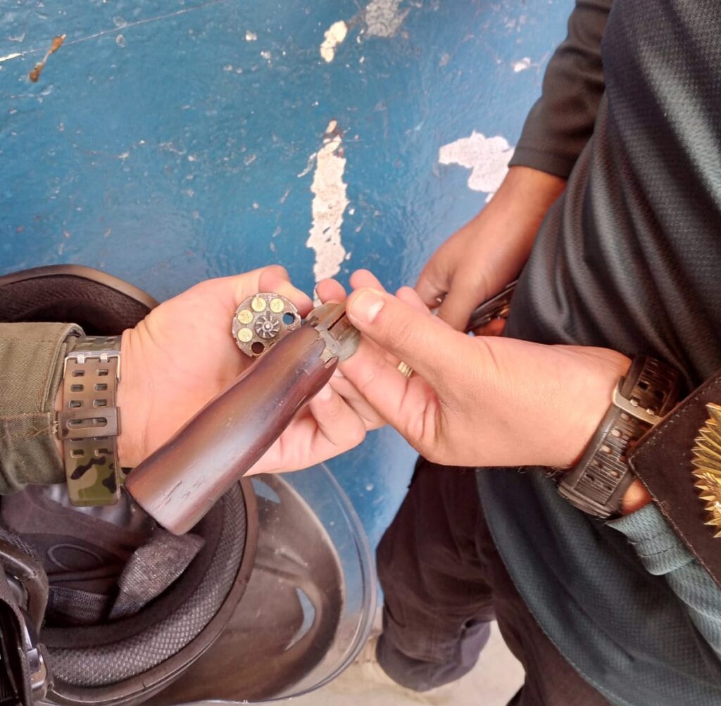 Posteriormente, dieron aviso a la policía y efectivos se trasladaron hasta el colegio, donde revisaron el arma, encontraron cuatro balas en su interior, procediendo a su secuestro.