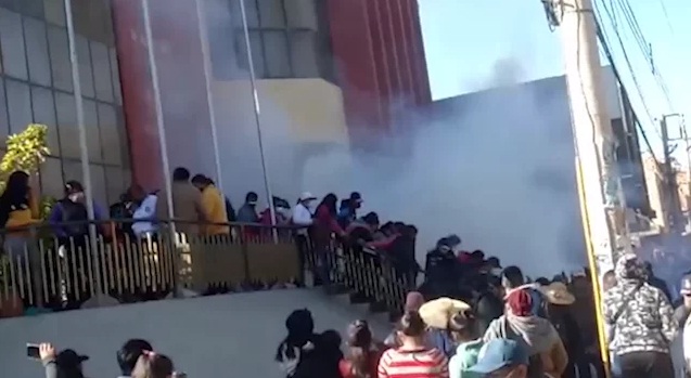 Un grupo intento ingresar al lugar, por lo que fueron reprimidos por los uniformados, realizando el uso de gases lacrimógenos, para ser dispersados del frontis de la Alcaldía Municipal de Colcapirhua.