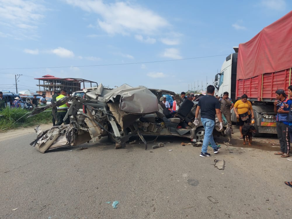 El vehículo protagonista fue una vagoneta tipo Noah, que circulaba por la carretera cuando por causas que se investigan el conductor llegó a perder el control del motorizado llegando a chocar contra un tracto camión.