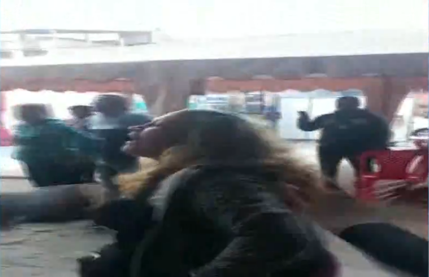 El hecho logró ser captado en video por uno de los acompañantes de la víctima, donde se observa como la agreden en cuestión de segundos, en los que además le roban.
