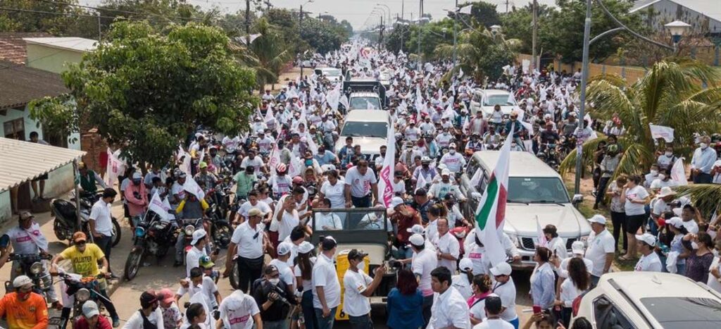 La contienda electoral se pone a tono con la salida de los candidatos a las calles en busca de la simpatía y el voto ciudadano pero lamentablemente los postulantes a la presidencia y sus adeptos no respetan ni un poquito el distanciamiento social para evitar los contagios de Covid -19.