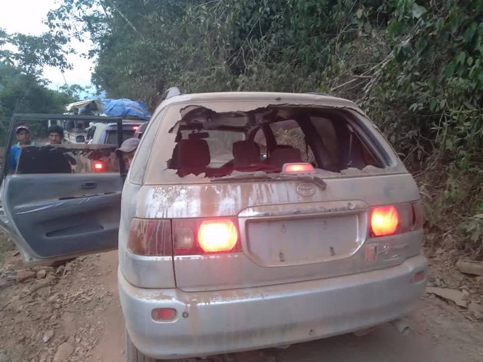 Una caravana de minibuses de la Federación Chamaca llegaron a la población de San Bartolomé, municipio de la Asunta completamente destrozados rotos los vidrios laterales y parabrisas.