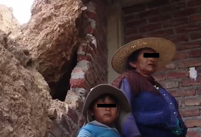 Tal fue la fuerza de la tierra que destrozó uno de los muros de la pequeña casa que estaba en construcción.