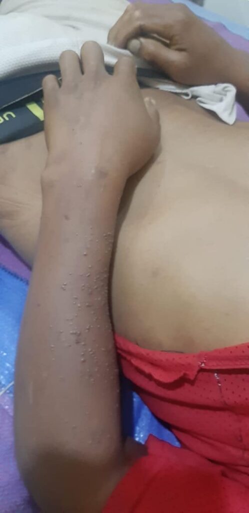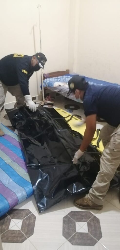 El cadáver de la víctima presentaba lesiones físicas; una serie de ampollas de picadura en los brazos izquierdo y derecho, con una cronología de su muerte de 6 horas aproximadamente antes de la intervención policial, vestía una polera de color rojo, mangas cortas, short de color blanco con rayas negras.