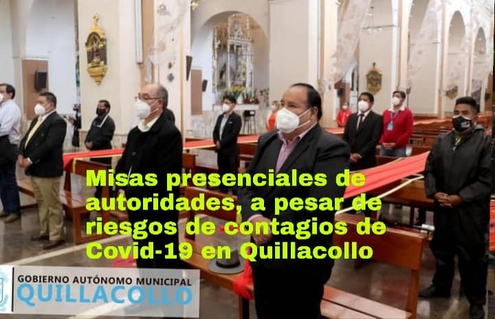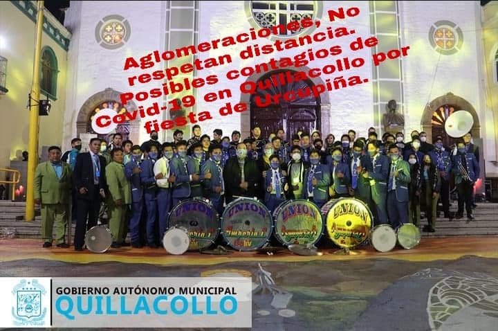 Autoridades de la alcaldía de Quillacollo a pesar del riesgo de contagios de Covid-19 a la cabeza de Hector Montaño realizan varias actividades presenciales por la fiesta de Urkupiña 2020, cantidad de gente llega hasta el Calvario, las aglomeraciones son persistentes por la apertura de puertas de la parroquia de San Ildefonso podría existir mayor incremento de casos. Agencias