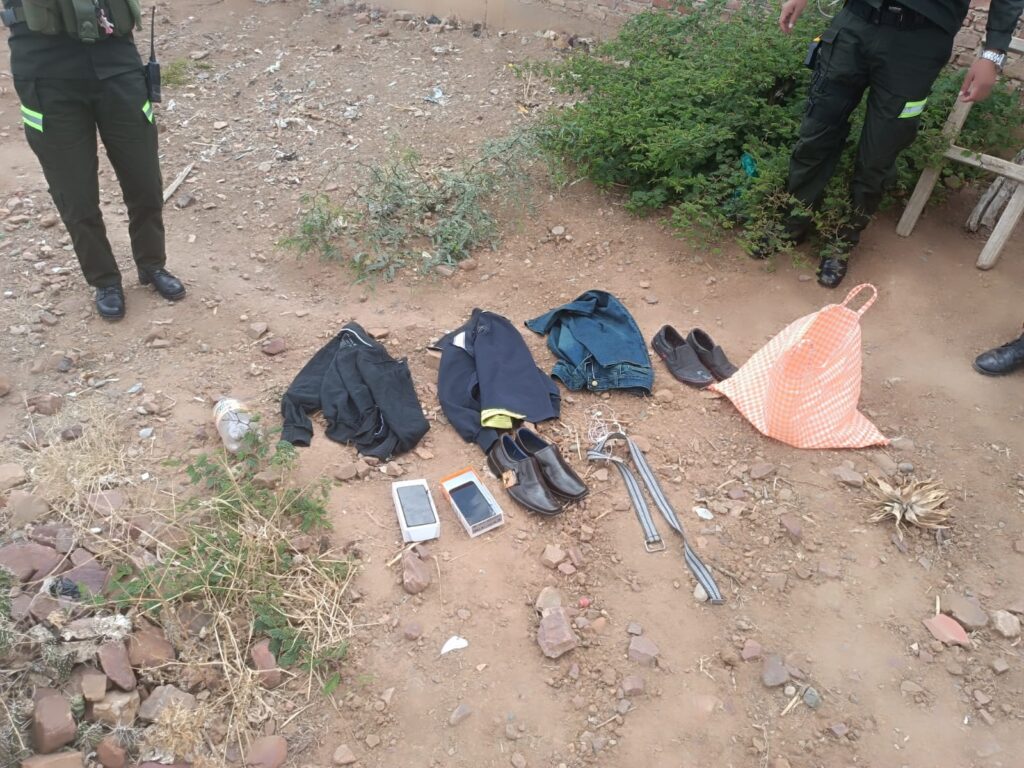 Tras una revisión de la bolsa encontraron varios teléfonos y prendas de vestir, “ha sido encontrado con una bolsa en cuyo interior se encontraban equipos electrónicos, pantalones, chompas. Joyas y algunos enseres”, agrega.