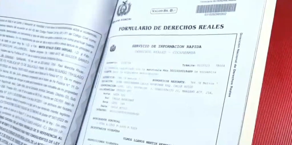 “Las artimañas, como haber falsificado un poder cuando mi cliente no se encontraba en Bolivia, es que ha logrado transferirse el inmueble en una venta consigo mismo”, explicó Claudia Zelada.