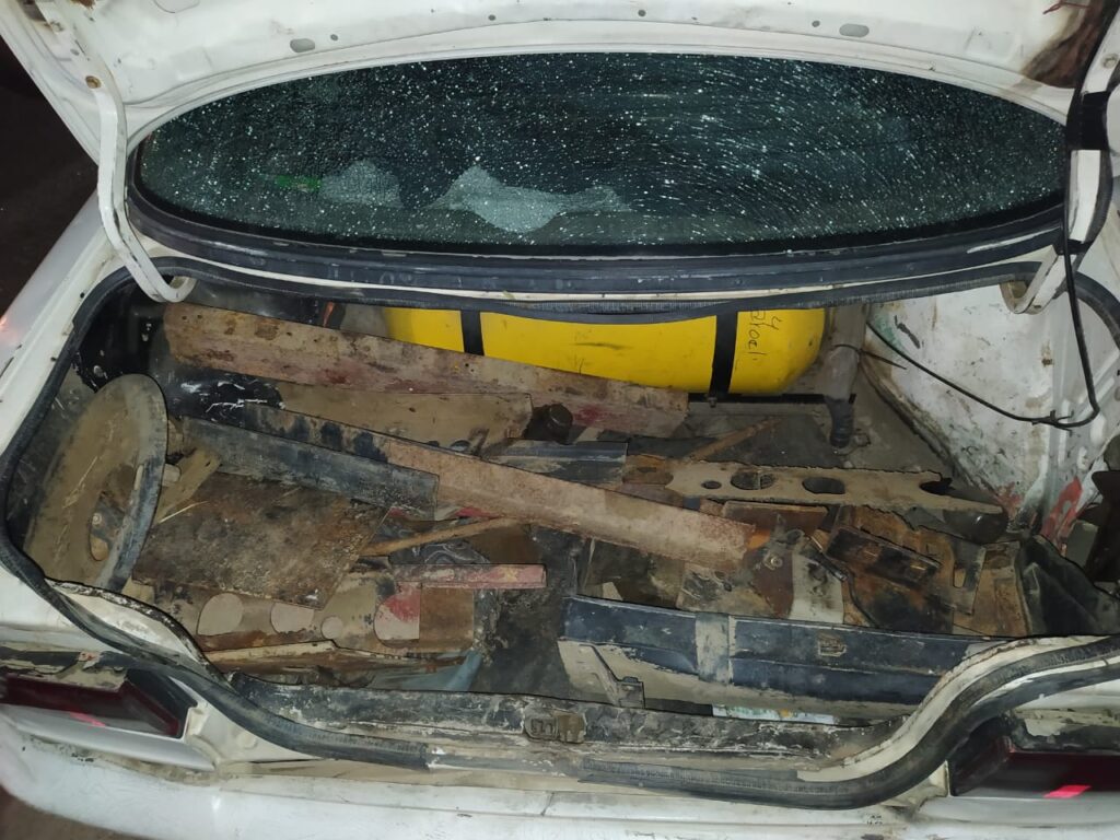 Dentro del guarda equipaje se encontró tres radiadores, un parachoques, dos jaladores de remolque, muelles y hasta chatarra en desuso.